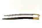 OPIS: Držak od mjedi s usječenim ušima, ukrašen baroknim ornamentima. Nastavak drška kovan zajedno sa sječivom. Na nastavku drška dvije poprečne reljefne trake s urezima. Sječivo čelično, jednobridno, zakrivljeno. Korice drvene, presvučene u kožu, a na ustima i na vršku okovane. Navodno potječe iz kule Stojana Jankovića u Islamu Grčkom. Kupljeno od Vladana Desnice iz Islama Grčkog 1948. g.