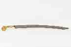 OPIS: Držak od mjedi, s većim, razmaknutim polukružnim ušima. Sječivo čelično, jednobridno, zakrivljeno. Korice nedostaju.