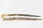 Hrvatski povijesni muzej Zbirka hladnog oružja JATAGAN BJELOSAPAC, 1826. - 1827. g. Osmansko carstvo : Balkan. Izradio Omer. Vlasnik Emin aga. čelik, kost, srebro; kovanje, lijevanje, filigran, tauširanje, rezbarenje, graviranje, jetkanje, pozlata jatagan: 725 : 570 : 30 mm; korice: 660 mm Inv. br.: HPM/PMH-000276